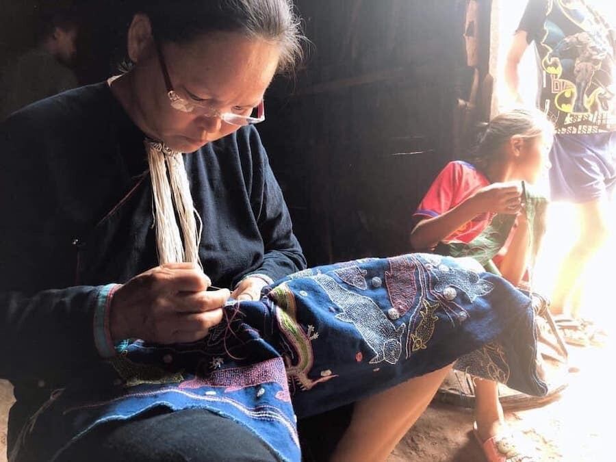 レンテン族の女性たちが機織り、藍染、刺繍を担当