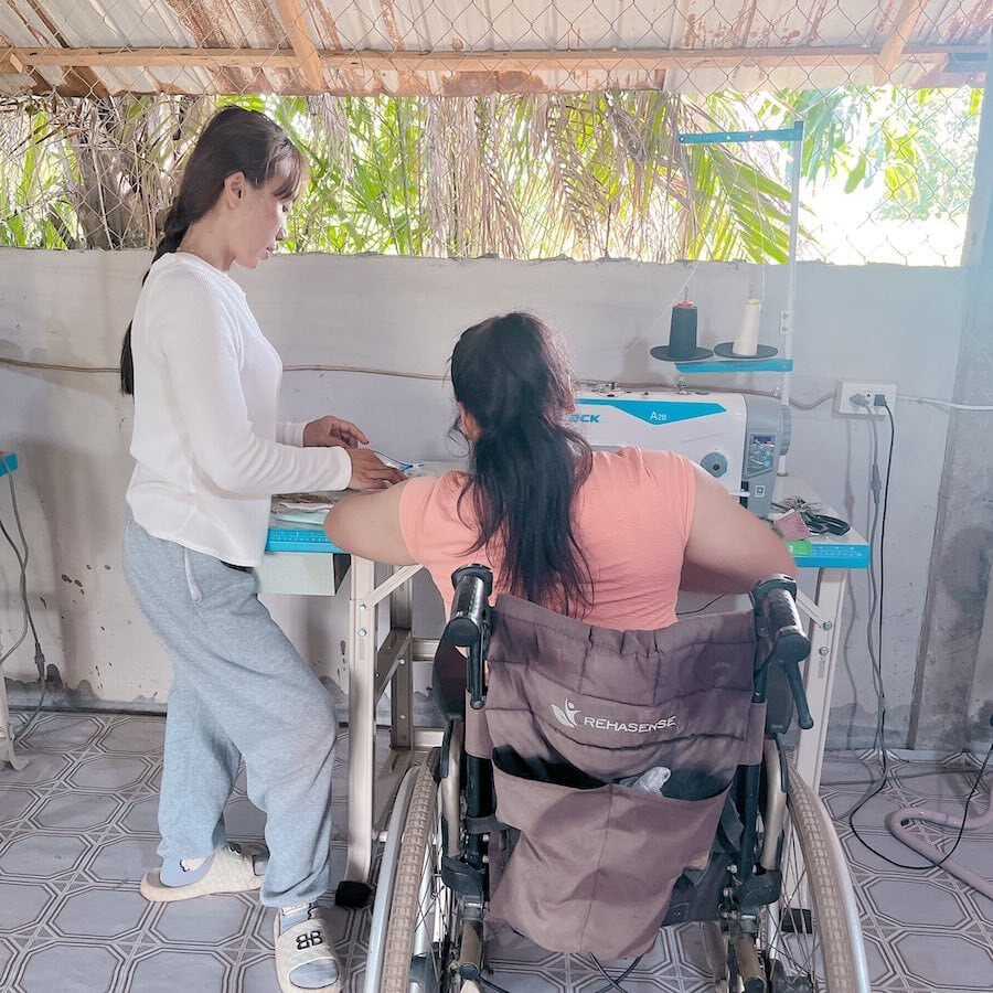 障がい作業所ソンパオがミシンがけを担当
