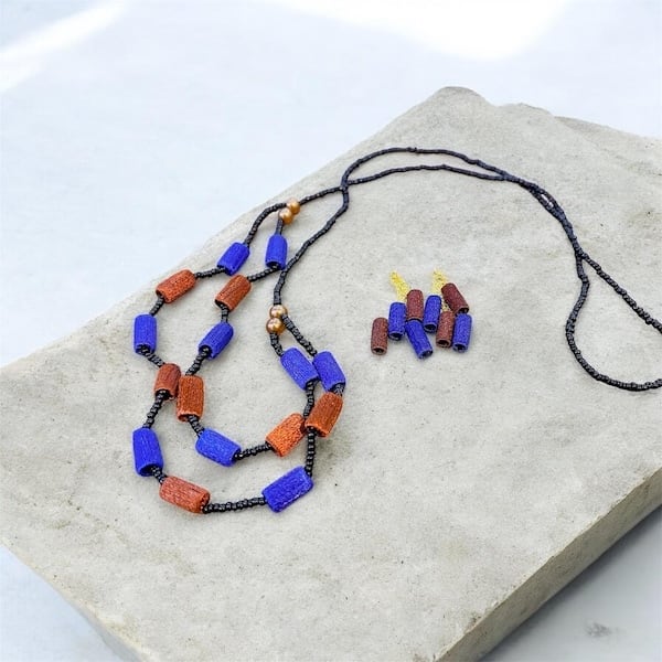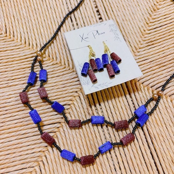 ラオスのシルク糸ピアス
